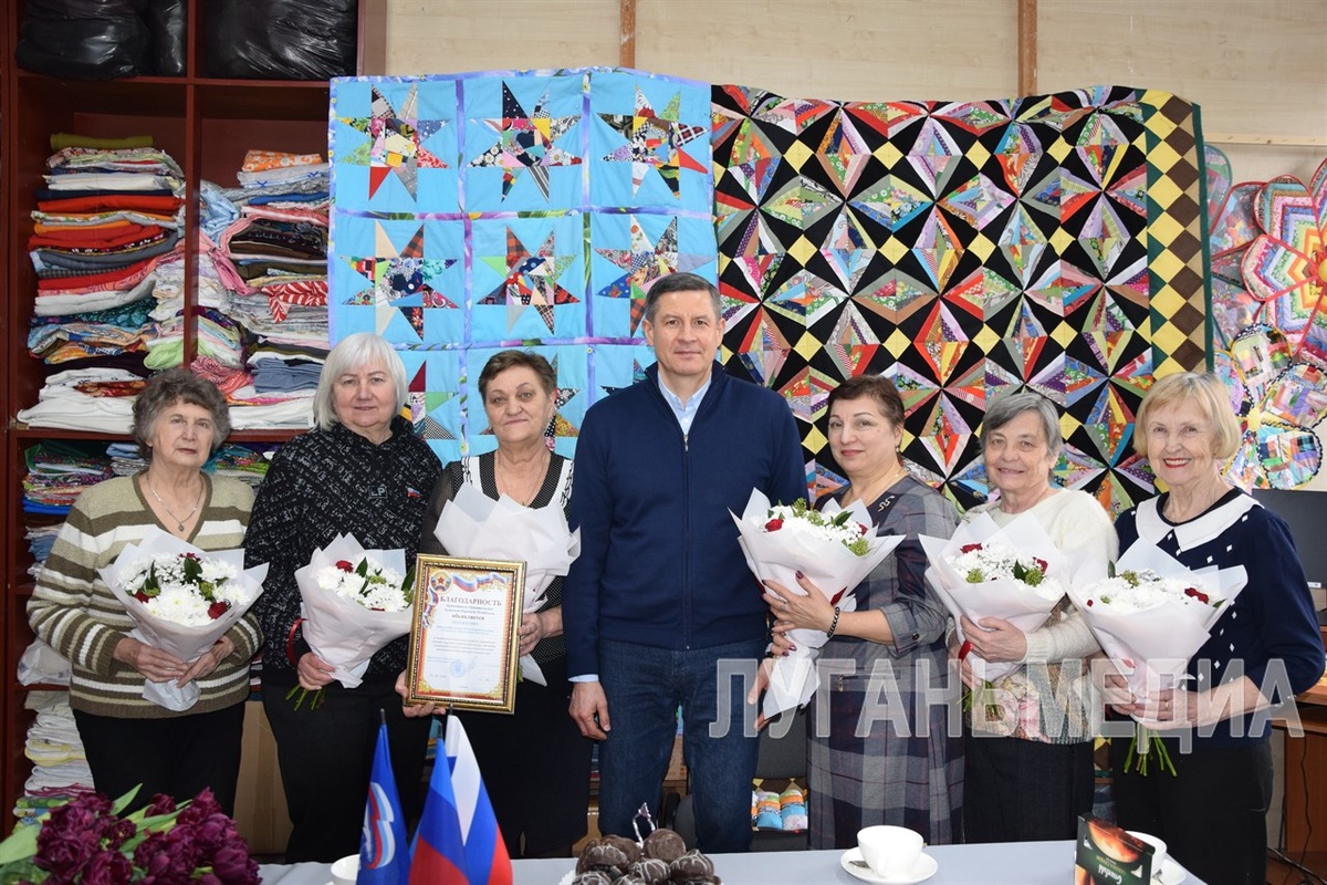 Председатель Правительства Луганской Народной Республики Егор Ковальчук в преддверии Международного женского дня поздравил женщин-волонтеров Славяносербского округа. Женщины пожилого возраста под руководством Ларисы Шрамко объединились в творческую студию «Рукотворные чудеса», чтобы оказывать гуманитарную помощь бойцам спецоперации. Премьер посетил творческий коллектив, который работает в Доме культуры Славяносербска. В ходе встречи волонтеры рассказали об истории создания коллектива и о его деятельности, показали свои работы и провели мастер-класс по изготовлению прикроватных ковриков. – Славяносербский округ особо отличается организованностью и сплоченностью общественников. Узнав о волонтерской работе неравнодушных людей из творческой студии, решил лично поздравить женщин с наступающим праздником и поблагодарить весь коллектив за такой необходимый труд. Здесь помогают фронту не по принуждению, а по зову сердца, – отметил Егор Викторович. Он добавил, что такая деятельность направлена,