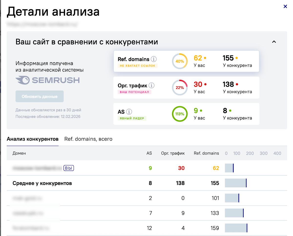 Ссылочный анализ конкурентов закрывает проблему неопределенности – вместо расплывчатых формулировок вы получаете цифры, на основе которых можно строить стратегию продвижения и защищать бюджет. Система сама считывает разрывы и показывает, каких именно ссылок не хватает. Остается только воспользоваться готовым планом.