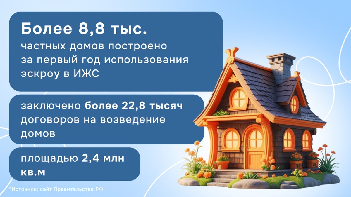 Заключено почти 23 тысячи договоров с применением эскроу-счетов в ИЖС за первый год работы защитного механизма, об этом сообщается на сайте