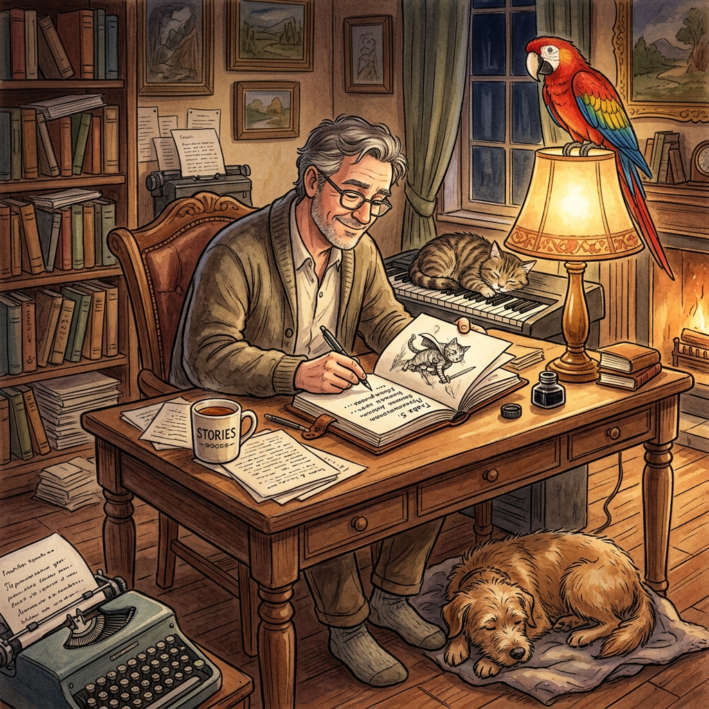Здесь Вы можете познакомиться с персонажами и даже пообщаться с ними лично! Ну и конечно же, тут можно найти наши книги! Можно ли найти в литературе более верного спутника, чем кошка, собака или даже… крокодил? Многие писатели не просто обожают домашних питомцев — они превращают их в героев своих книг и пишут о них с такой любовью, что порой пушистые (или пернатые) персонажи затмевают всех остальных героев. Любая кошка знает: рядом с пишущим человеком всегда найдётся место для “помощника”. Оторопелая морда в чернильнице, хвост, лениво лежащий на клавиатуре, или собака, которая терпеливо ждёт окончания главы - всё это часть настоящего творческого процесса. Иногда именно пушистый друг помогает создать целый роман! Например: Многие любимые герои из книг были списаны с реальных четвероногих спутников. Бывает и так, что автор наделяет главного героя чертами реального пушистого друга: особым взглядом, смешными привычками, манерой поведения.