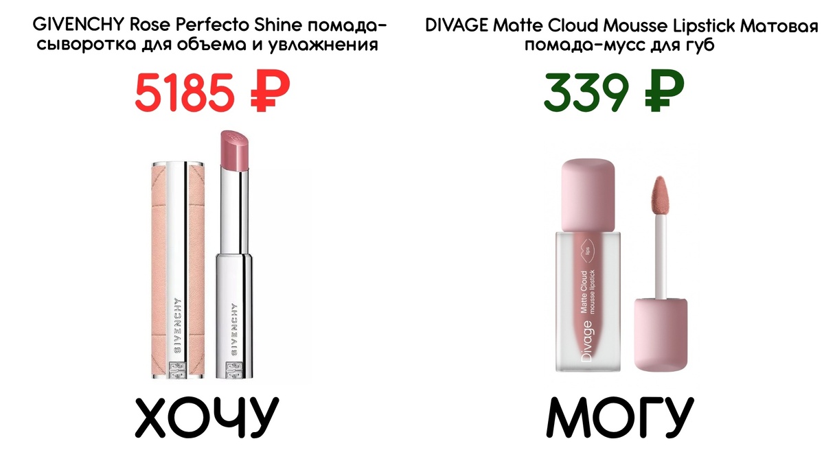 Сегодня в рубрике Хочу-Могу рекомендую матовую помаду! Если вы хотите выбрать помаду на весну, обязательно обращайте внимание на свой цветоколорит (без этого никак) и на весенние краски просыпающейся природы 🌸 И не забывайте об увлажнении: матовые помады почти всегда подсушивают губы. Хочу: GIVENCHY Rose Perfecto Shine Serum Lipstick помада-сыворотка для объема и увлажнения Тон 118 Mellow Pink, цена — 5185 рублей. Могу: DIVAGE Matte Cloud Mousse Lipstick Матовая помада-мусс для губ Тон 06 Сливовый, цена — 339 рублей. Весенняя ПЕРЕЗАГРУЗКА: встречай весну во всеоружии! 🌸 https://jacques-course.ru/spring_reload_be_inspired?utm_source=dzen