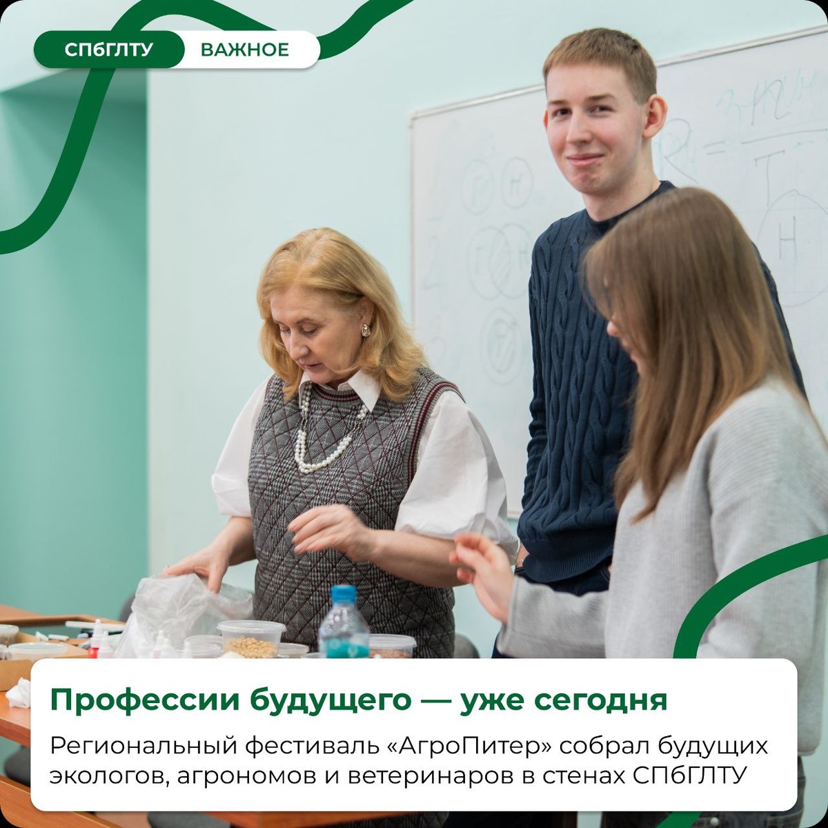 Наш университет стал главной площадкой регионального профориентационного фестиваля «АгроПитер», который собрал школьников 8–11 классов, увлечённых агропромышленными и экологическими направлениями. Мероприятие прошло при поддержке ЦОПП СПб и Центра творчества и образования Фрунзенского района в рамках марафона «Мастерские будущего». Участники не просто узнали об образовательных программах колледжей и вузов, а попробовали себя в реальных ролях: 🌾 экологов 🌿 агрономов 🐄 ветеринаров 🔧 агроинженеров Для нас большая честь стать площадкой такого масштабного события и показать школьникам, как наука и практика открывают путь в профессии будущего! 🚀 📸 Фото с фестиваля — в альбоме Подробнее — на сайте СПбГЛТУ #СПбГЛТУ #СПбГЛТУ_важное 👻 МАХ | 📲 ВК | 📝 ДЗЕН