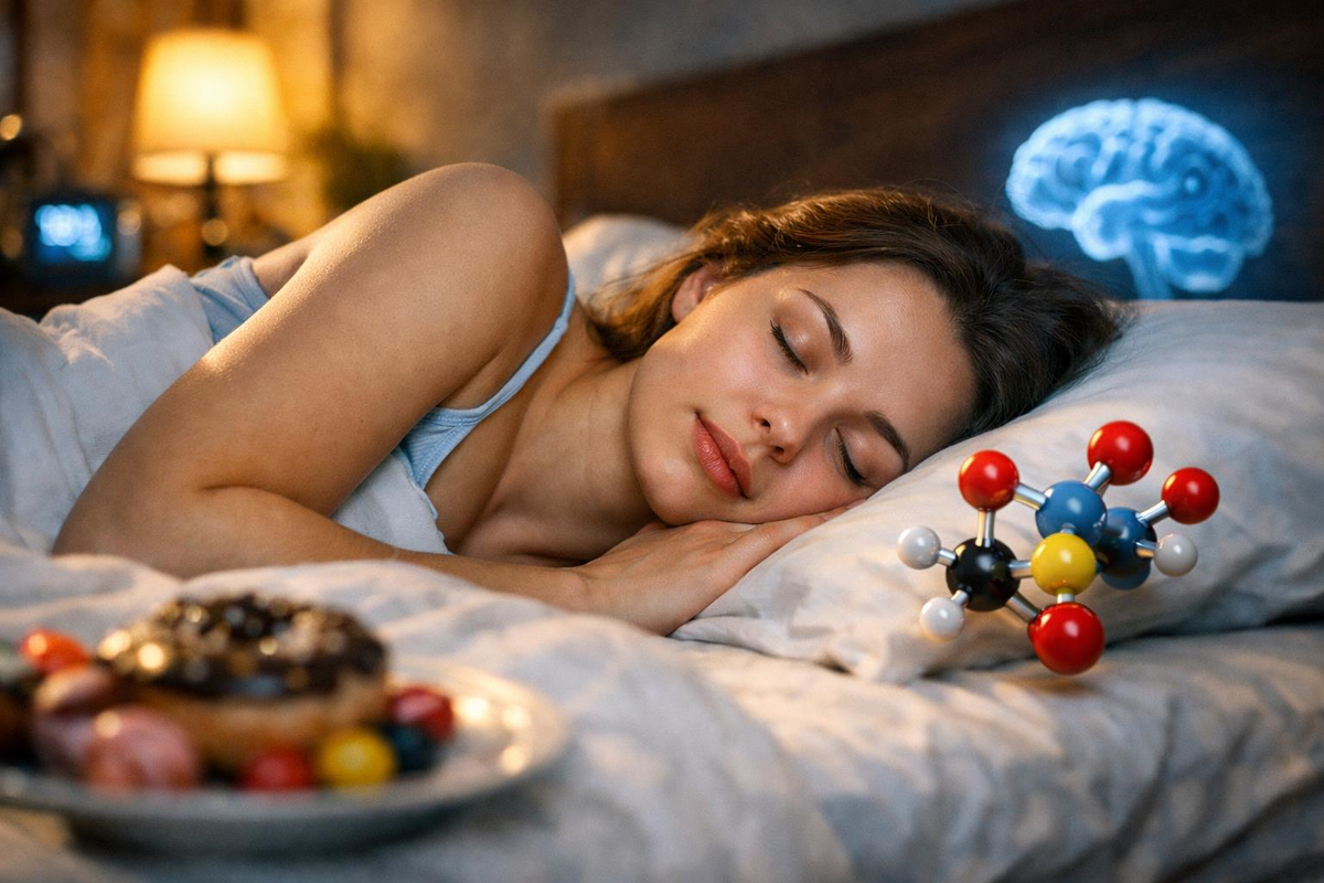 Это похоже на ситуацию с непрочитанным сообщением: гормон-сигнал отправлен, но мозг его проигнорировал, решив, что в условиях дефицита отдыха нужно срочно запасаться топливом. Организм воспринимает отсутствие сна как сигнал глобального кризиса, где единственный способ выжить - это съесть всё, что не приколочено.