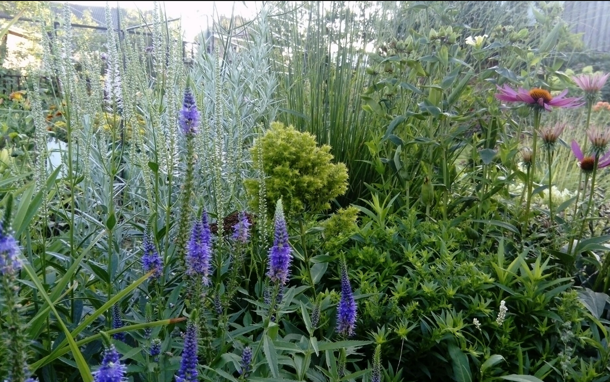 Самое простейшее растение - верОника, кто ж его не знает. Покажу сегодня разные, что имею. Уверена, что некоторые совсем не знакомы большинству садоводов. Вот и познакомимся и поговорим. Есть и посеянные, что обещаны быть необычными и яркими, а выросшие чуть ли не природными, что в овраге рядом растут. Иные не знаю, откуда появились, пара еще и потерялась, хоть точно были, очень уж просто их весной с сорняком перепутать... При представлении растения сразу видится луг, со всем его разнотравьем и всплески синевы в траве. Такое есть в саду, само собой, коль природный цветник в почете у садовода. Перекликаются с другими свечками - травами, скромно синеют. И розовеют, реже, все ж получились некоторые из посевов. Белую вот не найду второй сезон, одна бирка виднеется с названием. Но белые успешно заменяют вероникаструмы. Много лет смотрю на это фото и тщетно пытаюсь повторить. Но ведь не юбка, не сделать одинаковую выкройку уголка сада... Ничего особенного, но тут вам и структура и фак