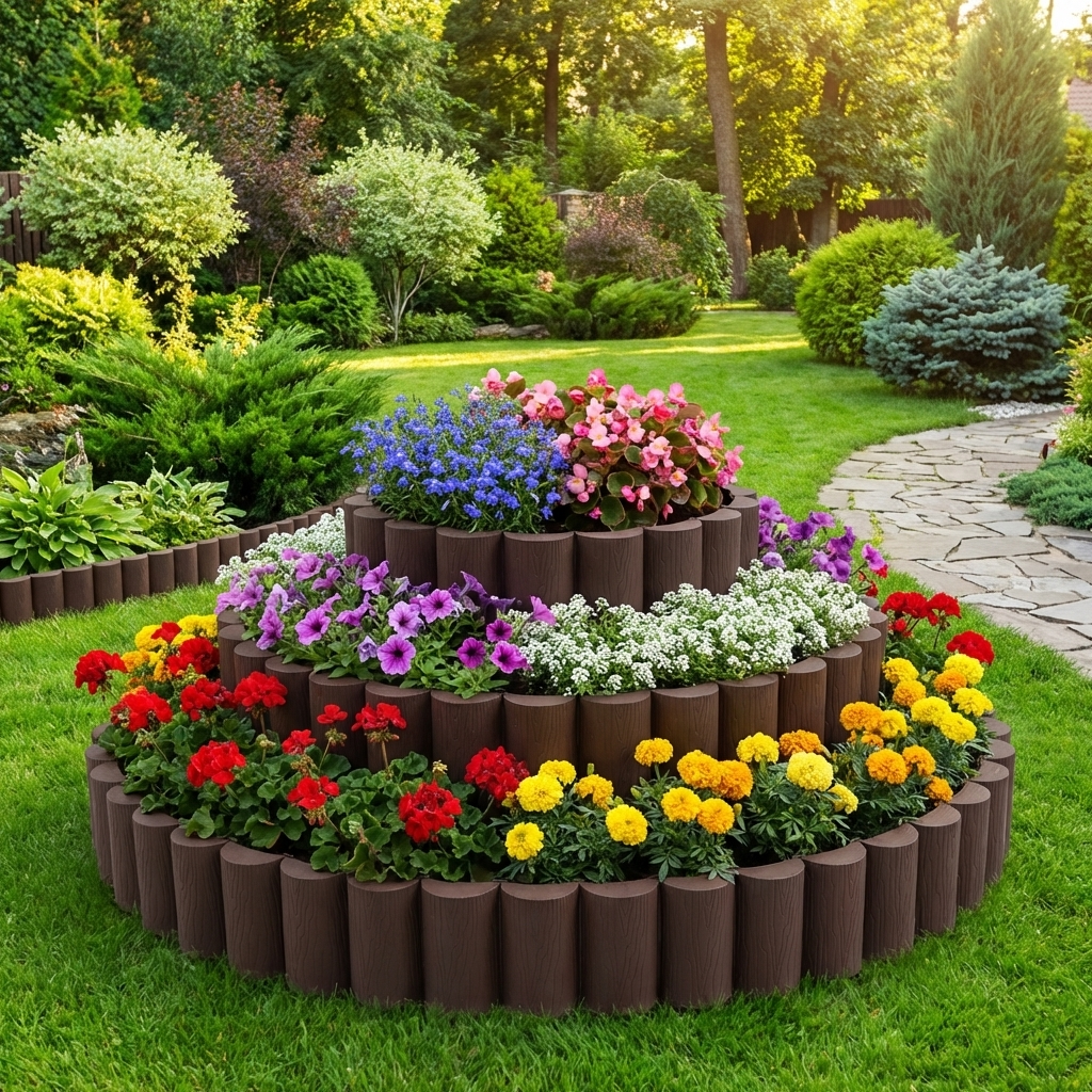 Многие думают, что красивая многоярусная клумба - это сложный ландшафтный проект, требующий найма дизайнера и бетонных работ. Но посмотрите на это фото: перед вами готовая композиция, которую вы можете собрать сами буквально за пару часов. Главный секрет здесь - наш бордюр «Пеньки». Это не просто ограждение, а настоящий конструктор для вашего сада. Забудьте про ржавеющий металл и гниющие доски: современный морозостойкий пластик позволяет экспериментировать с формами без лишних хлопот. Хотите повторить этот проект? Вот простая инструкция в три шага. Шаг 1. Рисуем контур