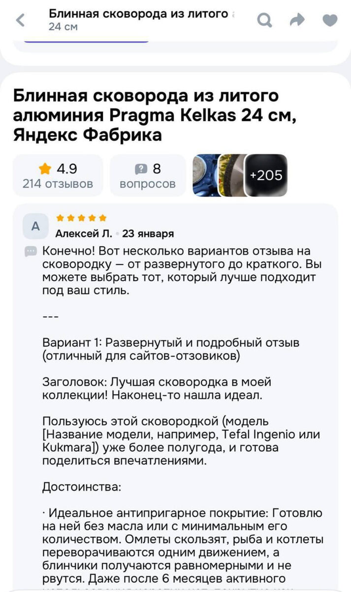 ИИ-отзыв. Вот кто-то запарился, хотя может это самовыкуп слегка сломался :) Вы ведь знаете, что самовыкуп вовсю практикуют, дабы накрутить позитивчик?