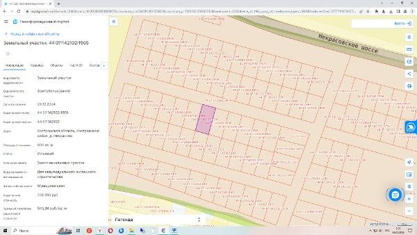 Название: Земельный участок с кадастровым номером 44:07:142102:1905, общей площадью 800 кв.м., расположенный по адресу: Костромская область