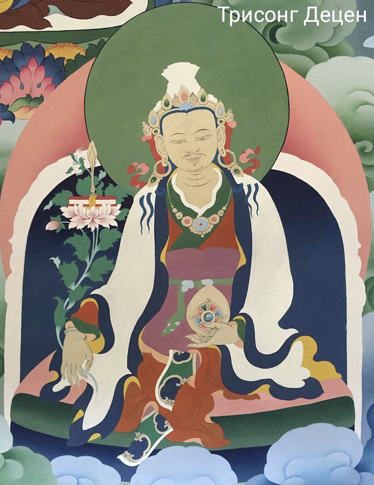 Среди индийских проповедников приехал и саморожденый из лотоса Падмасамбхава (Гуру Римпоче), тантрик, маг и чудотворец. Он поселился в пещере, ходил по воде, а бурные реки переплывал лепестке. Жрецы сражались с ним - травили его ядом, но яд не действовал; сбрасывали камни, но камни зависали в воздухе. Тогда напоили яка дурманом, чтобы затоптал, но як упал перед ним на колени. Три дня бились жрецы с Падмасамбхавой, и все жрецы были убиты.
