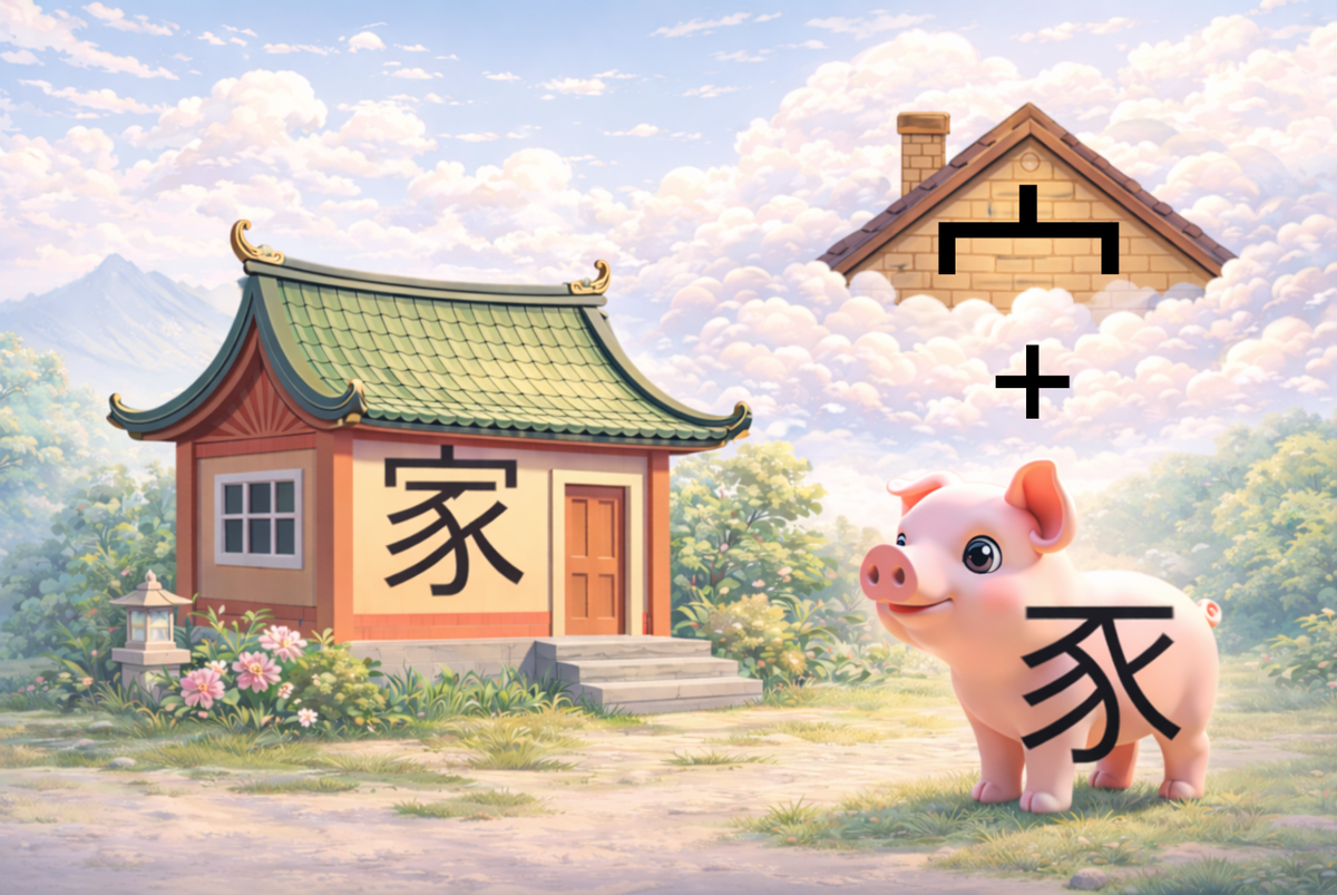 🐷 Посмотрите внимательно на иероглиф 家 (jiā) — «дом», «семья».