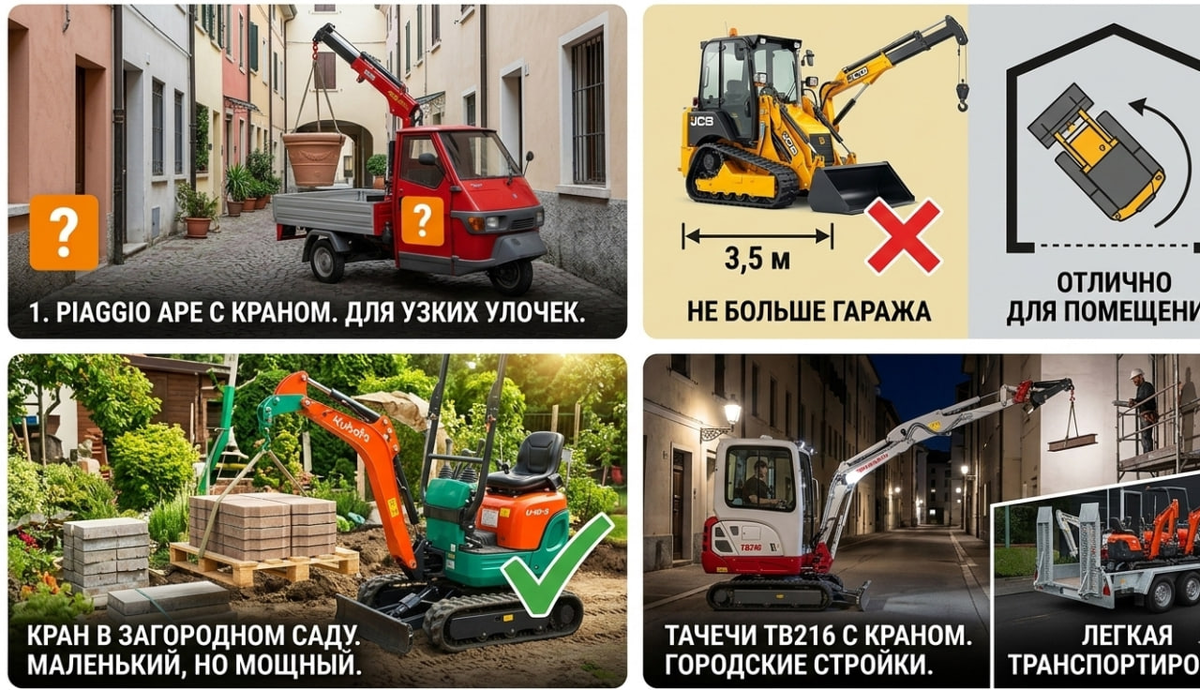 Манипуляторы — это обычно большие грузовики с краном на платформе. Но есть и миниатюрные модели, которые удивляют своей компактностью и функционалом. Такие машины часто используют в узких условиях, на складах, фермах или стройках в старых городских кварталах. Разберём 10 самых маленьких манипуляторов, которые реально встречаются на практике. Трёхколёсная платформа Подъёмный кран до 300 кг Радиус поворота почти ноль Идеально для узких улочек и дворов Общая длина около 3,5 м Грузоподъёмность 400–500 кг Может работать в помещениях или на маленьких стройках Отлично подходит для ландшафтных работ Длина 2,5 м Грузоподъёмность до 600 кг Используется на фермах и в теплицах Малая масса позволяет легко транспортировать Мини-экскаватор с выносной стрелой Длина около 3 м Подъём небольших грузов, установка конструкций Хорошо подходит для узких участков Модель длиной менее 3 м Грузоподъёмность 500–600 кг Компактный, может разворачиваться в ограниченном пространстве Часто используют на городски