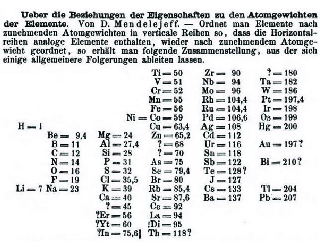 6 марта 1868 года русский химик Дмитрий Иванович Менделеев представил Русскому химическому обществу первую версию системы расположения