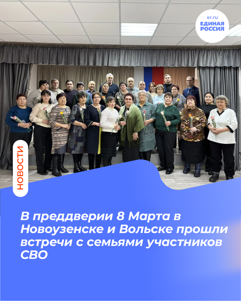 Также в преддверии Международного женского дня секретарь Вольского местного отделения Единой России поздравил близких участников СВО Мухаббат Тодырец, Ларису Крайневу, Дарью Задворнову. Он выразил признательность и уважение женщинам, чьи судьбы неразрывно связаны с заботой о семье, воспитанием детей и служением Родине.