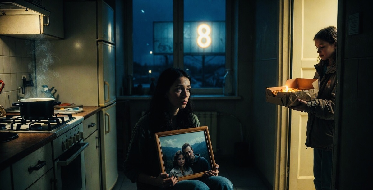 Я вернулась в комнату. Включила свет. Развернула бумагу. Внутри — коробка с домашним пирогом, всё еще дышащим теплом, и записка, написанная криво, размашисто, детской рукой: «Мама сказала, что у вас сегодня грустный праздник, а пирог с яблоками лечит всё. Не плачьте».