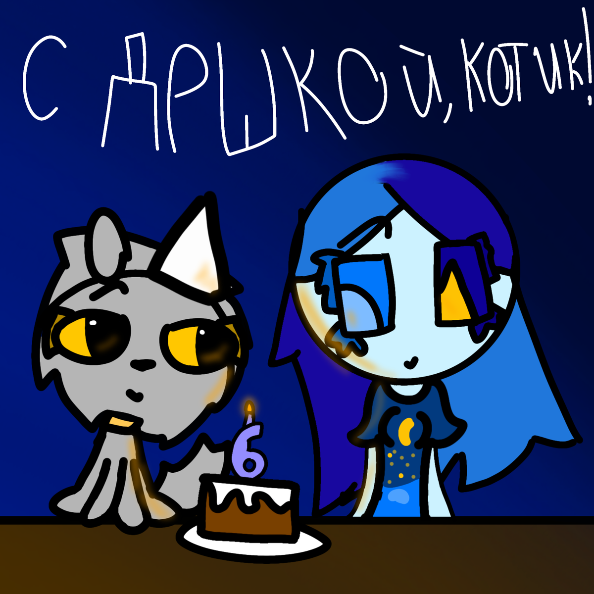 Артик на ДР кошки Али стар,ей исполняется 6 лет по кошачьи,желаю ей здоровья и счастья !>:3