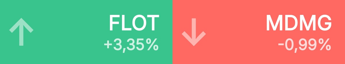 : Совкомфлот • 81,78 ₽ • 3,35% Хэдхантер • 2 998 ₽ • 2,36% Мечел прив • 68,05 ₽ • 1,26% Русал • 43,39 ₽ • 1,19% Юнипро • 1,59 ₽ • 1,11% РусГидро • 0,45 ₽ • 1,00% Новатэк • 1 320 ₽ • 0,77% МТС Банк • 1 398 ₽ • 0,61% Фикс Прайс • 0,60 ₽ • 0,60% Озон • 4 605 ₽ • 0,55% 🔻 Топ-10 лидеров падения среди крупнейших акций: Медикал Гр • 1 415 ₽ • -0,99% ЕвроТранс • 122 ₽ • -0,85% Московский • 5,70 ₽ • -0,80% РуссНефть • 141 ₽ • -0,78% ММК • 29,84 ₽ • -0,70% Россети • 0,07 ₽ • -0,68% Интер РАО • 3,21 ₽ • -0,56% ЭЛ5-Энерго • 0,50 ₽ • -0,51% Северсталь • 935 ₽ • -0,49% М.Видео • 73,30 ₽ • -0,48%
