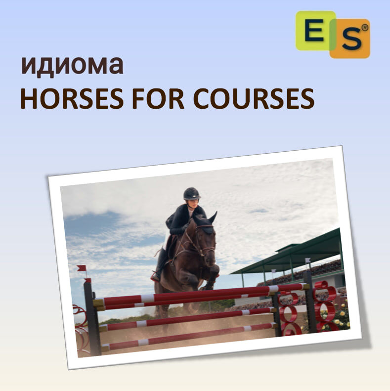 Hi guys! Разберём новую идиому ⬇️ Слова: horse - лошадь for - для course - дистанция Дословно: лошади для дистанций Значение: different people are suited to different things - разные люди подходят для выполнения разных задач По-русски мы в таком случае говорим: «каждому свое». Например: He is good at managing people, but he can't sell anything well. Horses for courses. - Он хорош в управлении людьми, но он не может продать что-либо. Каждому свое. Происхождение: Идиома была придумана на скачках. Как вы знаете, существуют разные виды скачек: длинные и короткие заезды, с препятствиями и без. Для разных типов соревнований предназначались разные лошади. Например, лошадь могла быть выносливой и отлично подходить для длинных заездов, а могла быть быстрой и подходить для коротких заездов. Примечательно, что в США, где этот вид спорта не так популярен, как в Англии, выражение фактически не используется. Зато в Великобритании идиома очень популярна.