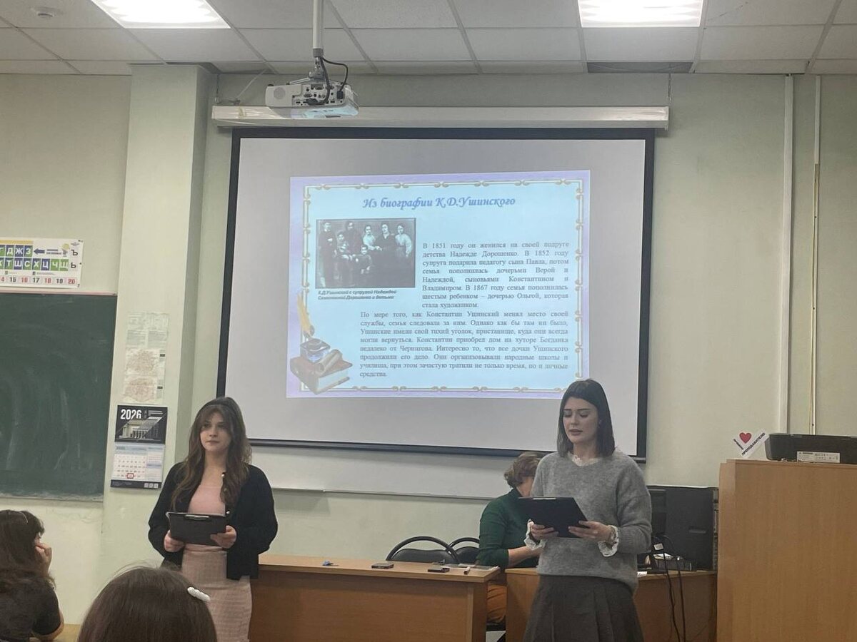 🎓 2 марта, в день рождения Константина Дмитриевича Ушинского, студенты специальности «Преподавание в начальных классах» собрались на особенном мероприятии — «Разговоре об Ушинском»! Что было? Все, чтобы по-новому взглянуть на классика отечественной педагогики: 📖 Узнали о педагогических идеях Ушинского и о его жизни — как он шел к славе великого дидакта, какие трудности преодолевал, что вдохновляло его. 🎥 Посмотрели документальный фильм — живые кадры и факты добавили глубины образу Константина Дмитриевича. 📚 Взяли в руки «Родное слово» — читали отрывки, обсуждали их, делились впечатлениями. Удивительно, насколько актуальны мысли Ушинского сегодня! Мероприятие организовали преподаватели колледжа Виктория Андреевна Баранова, Анастасия Николаевна Захарова, Екатерина Павловна Серебрякова, Наталья Владимировна Шишигина. 💬 А вы знакомы с трудами Константина Дмитриевича Ушинского? Какое его высказывание запомнилось вам больше всего? Пишите в комментариях! #Профильные_мероприятия