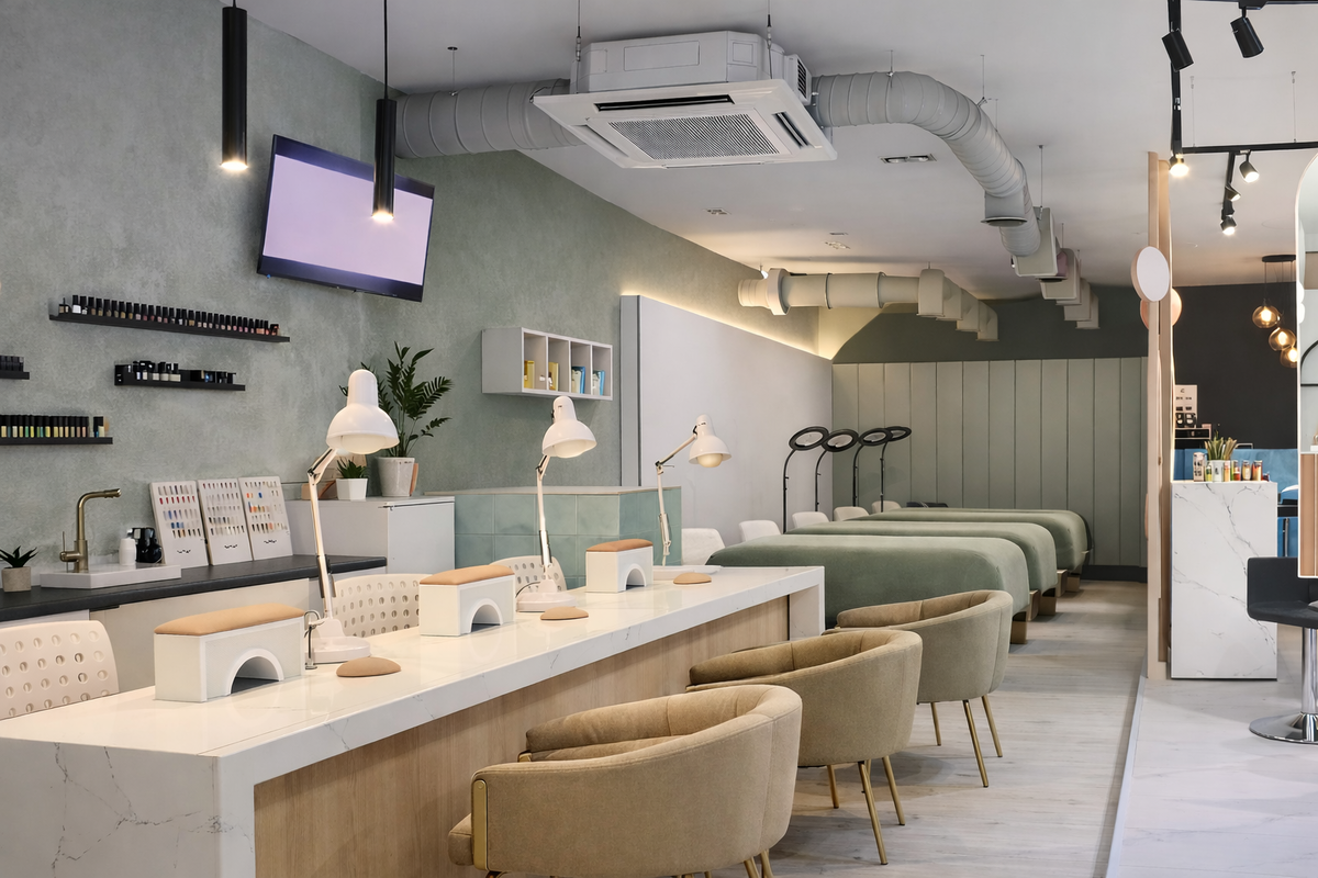 В бьюти-индустрии атмосфера – это часть сервиса. Клиент приходит расслабиться, выпить кофе, навести красоту. Но если уже с порога в нос бьет резкий запах ацетона, жженого кератина или краски для волос, желание вернуться пропадает. «Потерпят, это же химия», – думают некоторые владельцы. И теряют клиентов. А еще получают жалобы от мастеров на постоянные головные боли и аллергию. В воздухе маникюрного кабинета или парикмахерского зала находится опасный коктейль: Если ваш салон находится в жилом доме (на первом этаже), вы находитесь под прицелом не только клиентов, но и жильцов сверху. Главное правило СанПиН – вентиляция салона красоты в жилом доме должна быть автономной. Категорически запрещено врезаться в общедомовую шахту! Если соседи почувствуют запах ваших лаков у себя в квартире, первая же проверка Роспотребнадзора закроет ваш бизнес до устранения нарушений. Чтобы воздух в салоне оставался чистым и безопасным для мастеров и клиентов, важно работать сразу в двух направлениях. Это перв