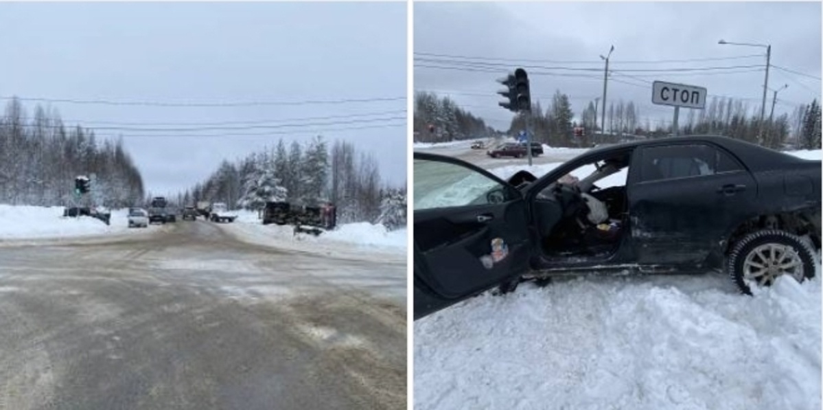 В Госавтоинспекции Карелии рассказали о ДТП, которое случилось 5 марта в 9:05 в Костомукше. По данным источника, 77-летний водитель Toyota Corolla двигался по 202 км автодороги А-137 со стороны Костомукши. На перекрестке Ледмозерского шоссе и проспекта Горняков пенсионер поехал на «красный» и столкнулся с Volvo FM. Большегруз, которым управлял 34-летний водитель, от удара опрокинулся. Легковушка также столкнулась со встречным «ВАЗ 2114», под управлением 40-летней женщины. В результате происшествия пенсионер получил травмы и был госпитализирован. Ранее были повреждены четыре автомобиля в результате ДТП в центре Петрозаводска.