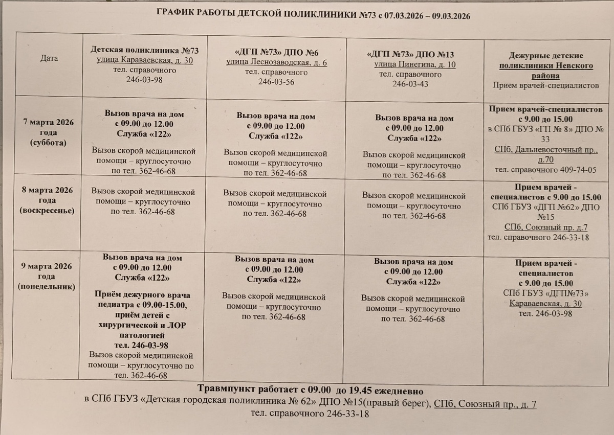 Информация из детской поликлиники №73