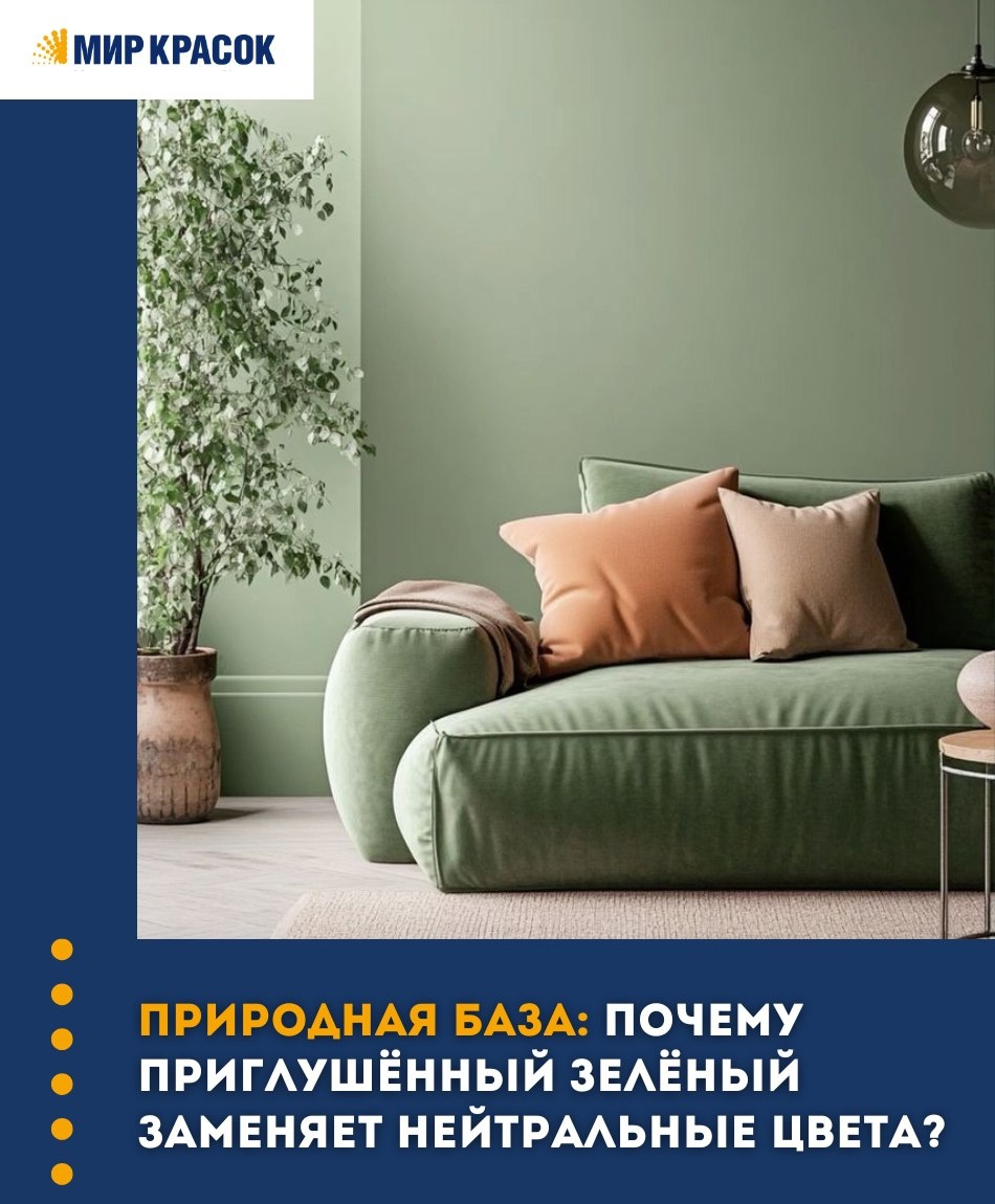 Сегодня эту роль всё чаще берут на себя сложные зелёные оттенки🎨 И нет, это не про «яркую траву на стенах» Речь про шалфей, эвкалипт, молодой мох — приглушённые, спокойные цвета с природным характером🌳 Почему они работают❔ Потому что зелёный — самый комфортный для глаза оттенок. Он не утомляет, мягко реагирует на свет и делает пространство живым без лишней драматичности✨ В отличие от бежа, у него больше глубины. 📍Главный вопрос — как не переборщить. 🌿Первый приём: используйте зелёный как фон, а не акцент. Стена в оттенке шалфея + молочные или тёплые песочные элементы — и интерьер уже выглядит свежо. 🌿Второй приём — сочетайте зелёный с натуральными фактурами: дерево, лён, керамика. Тогда цвет раскрывается мягко. 🌿И третий инсайд: выбирайте приглушённые оттенки с серым подтоном. Они выглядят дороже и спокойнее чистого зелёного. 🌷Весной зелёный — это не тренд. Это состояние. Главное — выбрать правильный тон.