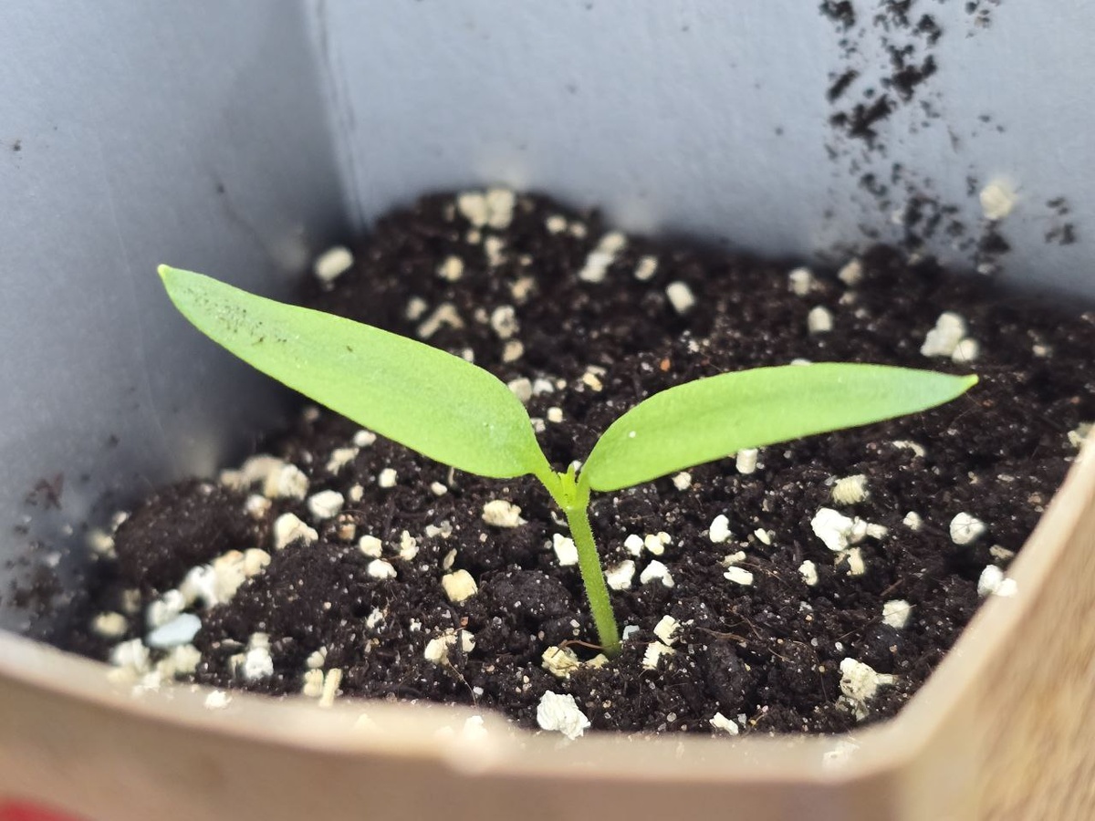 В этом году решила провести небольшой эксперимент — вырастить сладкий перец из семян обычного покупного красного перца из магазина. Оказалось, что это очень увлекательный процесс. Сначала аккуратно достала семена из спелого красного перца и хорошо их просушила. Семян в одном перце оказалось очень много, поэтому для эксперимента решила использовать только часть. В феврале приступила к следующему этапу — замачиванию. Чтобы семена набухли и быстрее проросли, положила их между двумя ватными дисками и смочила теплой водой. Диски держала в теплом месте. Уже через 4–5 дней семечки начали проклевываться. Когда появились маленькие росточки, посадила семена в грунт. В небольшую плошку насыпала примерно 2–3 см земли, аккуратно разложила семечки и слегка присыпала их сверху почвой. После этого пролила теплой водой. Чтобы создать эффект теплички, накрыла плошку обычным полиэтиленовым пакетом и поставила ее в теплое место на кухне. Примерно через 7–10 дней появились первые всходы. Каждое утро снима