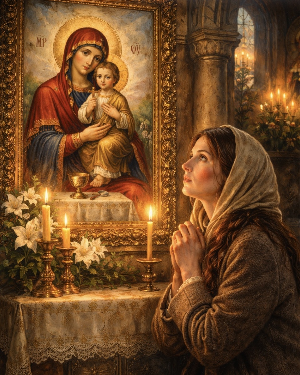 Наталья подошла к иконе, перед которой уже стояли несколько людей. Кто-то тихо крестился, кто-то долго смотрел на лик Богородицы.