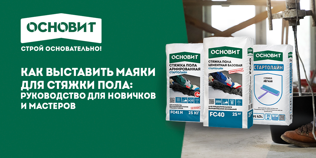 Это самый распространённый вариант для полусухих и мокрых стяжек. Здесь используются металлические Т-образные профили (штукатурные маяки) или трубы. Ключевой момент — способ фиксации. Технические карты профессиональных смесей, таких как Основит Стартолайн FC40 и FC41 H, категорически запрещают крепление маяков на гипс или гипсовые материалы. Гипс несовместим с цементными составами, может вызвать коррозию металла и привести к образованию трещин в месте крепления.