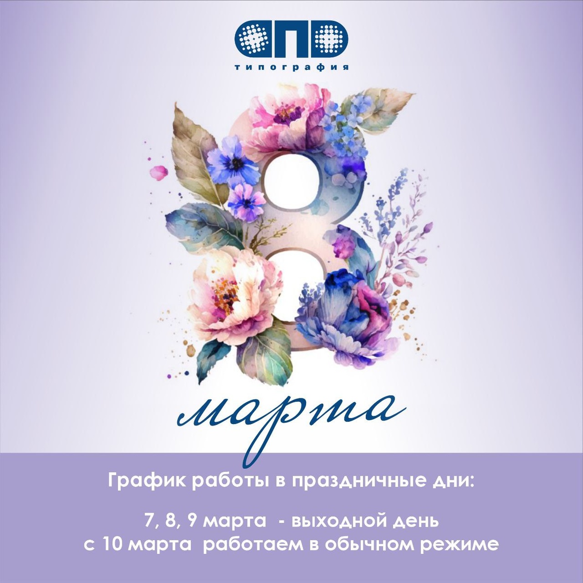 🌺Команда Типографии АПД 🎉поздравляет с наступающим 🌺Международным женским днем🌷🌷🌷 прекрасных женщин