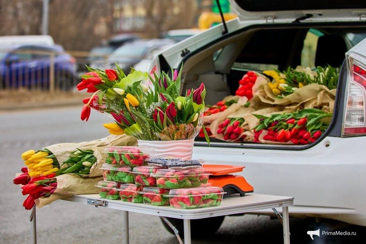 💐 Цены на тюльпаны варьируются от 99 рублей в супермаркетах до 150–200 рублей на уличных точках. В магазинах также предлагают букеты: пять тюльпанов за 499 рублей или пятнадцать за 1299. На Луговой цветы продают примерно по 150 рублей, а также пачками по 20 штук за 2800. На рынке китайские продавцы держат ту же цену. В районе Баляева тюльпаны стоят около 180–200 рублей, иногда продавцы делают небольшие скидки. На Третьей Рабочей цветы продают примерно по 180 рублей, включая пионовидные сорта. По словам продавцов, тюльпаны привозят из теплиц Артёма.