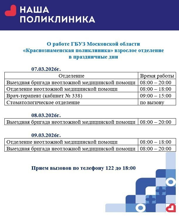 Расписание работы поликлиники (взрослого и детского отделений) в праздничные дни