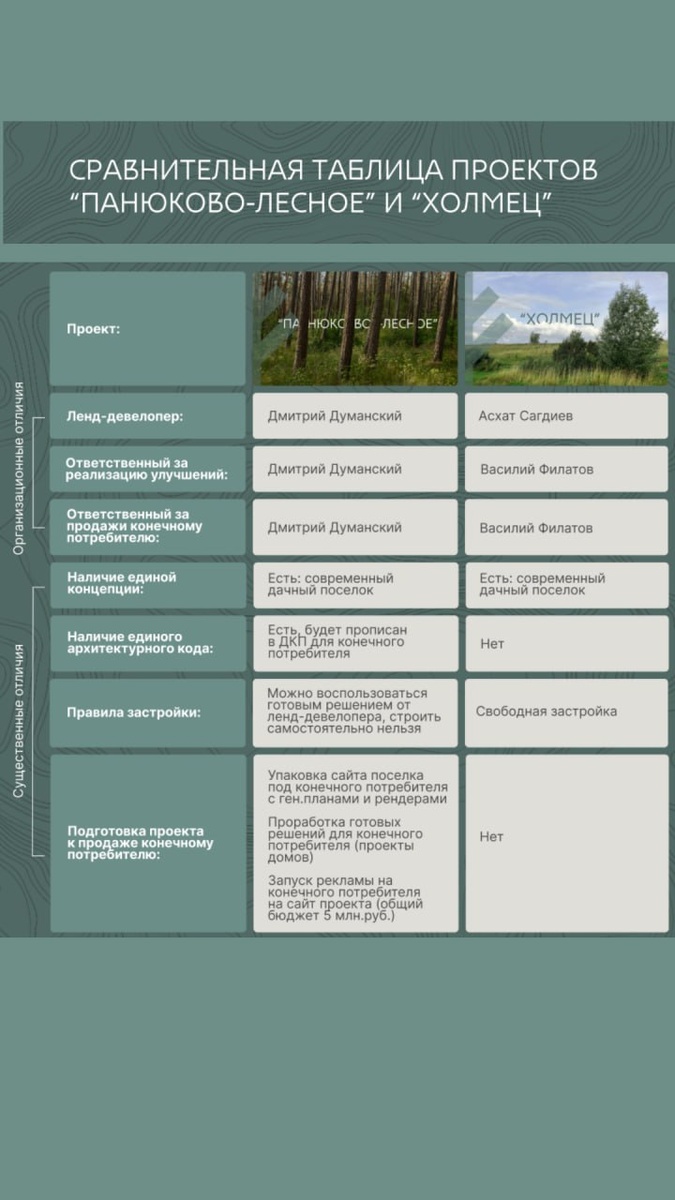 📊 СРАВНЕНИЕ ПРОЕКТОВ: ПАНЮКОВО-ЛЕСНОЕ vs ХОЛМЕЦ