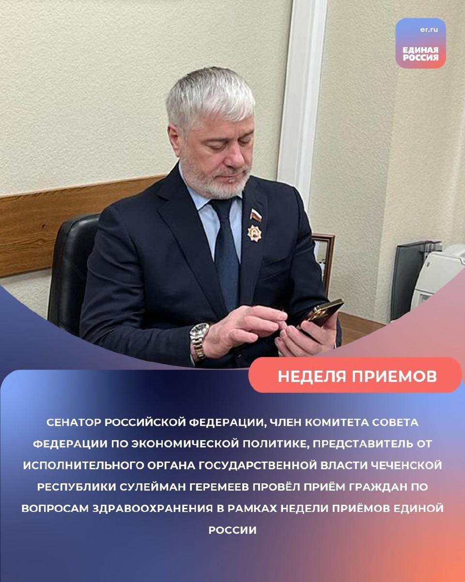 государственной власти Чеченской Республики Сулейман Геремеев провёл приём граждан по вопросам здравоохранения в рамках недели приёмов Единой России. В ходе мероприятия к сенатору обратился житель Шелковского района Чеченской Республики с просьбой о помощи в решении проблем, связанных с тарифами на жилищно-коммунальные услуги. Гражданин выразил обеспокоенность по поводу растущих долгов по оплате ЖКХ, а также непонятных начислений, которые вызывают затруднения в финансовом плане. Сулейман Садулаевич выслушал обращение и предложил свою помощь в разборе ситуации. Он также пообещал обратиться в соответствующие инстанции для проверки корректности начислений и оказания поддержки в погашении долгов. #ЕдинаяРоссия #ПриёмГраждан #ЗаботаОГражданах #ЕРпомогает95 #ЕР95