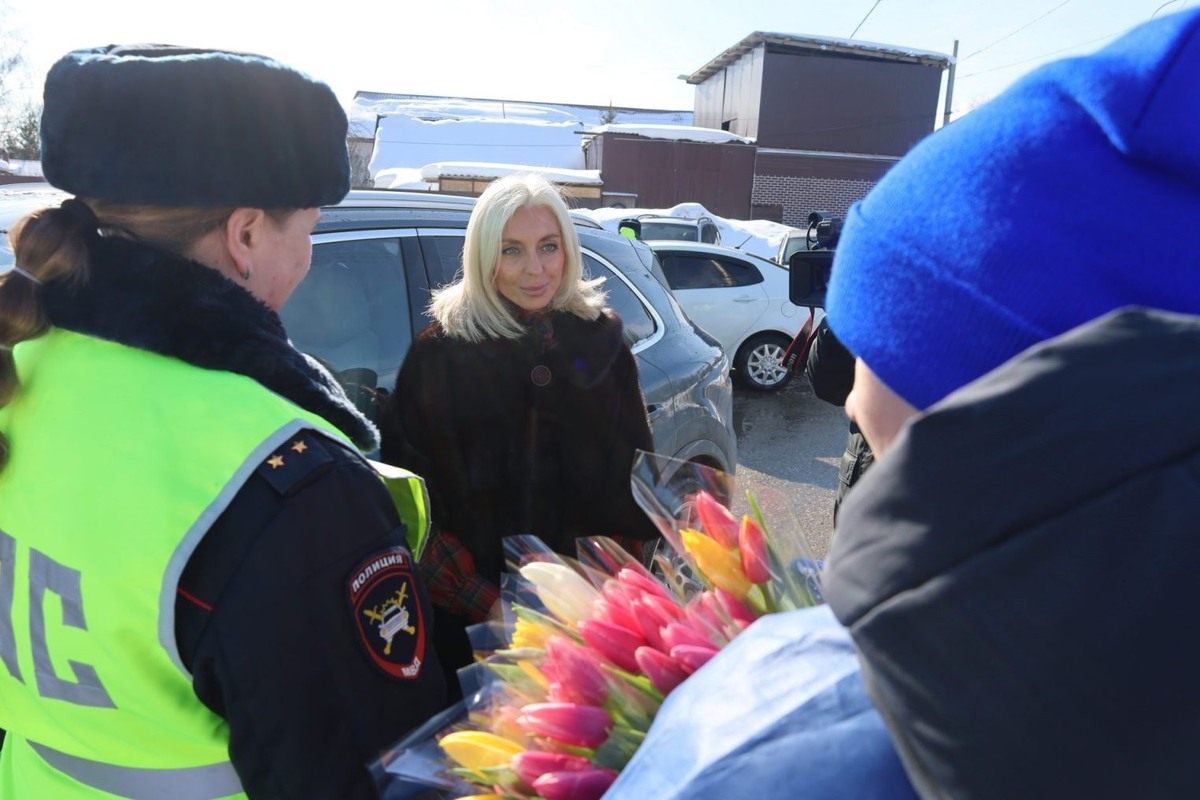 Повышенное внимание представительницам прекрасного пола оказывали не из-за нарушений. И это неудивительно: женщины по статистике реже совершают ДТП и пренебрегают правилами, хотя многие мужчины в это и не верят. Но на этот раз постовые вышли на оживленную магистраль вовсе не для того, чтобы оценить достоверность исследований. Они дарили дамам букеты тюльпанов. Вместе с автоинспекторами в акции «Цветы для автоледи» участвовали школьники из отряда ЮИД школы № 38 Костромы. Женщинам-водителям вручали весенние цветы, а заодно напоминали о необходимости соблюдения правил дорожного движения и внимательности за рулем. Фото: Госавтоинспекция Костромской области.