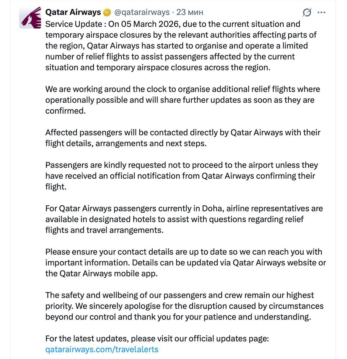 Продолжаем следить за эвакуацией из стран Персидского залива. ✈️ «Аэрофлот» вывезет сегодня ещё 4 рейсами из Дубая и Абу-Даби, а из аэропортов Дубая в Москву запланировано уже 16 вылетов на 6 марта. 💸 Если не попасть на регулярный рейс, частный перелёт в Россию может обойтись в $30 тыс. с человека, но в группе цена падает. ℹ️ Генконсульство в Дубае разъяснило, что «Аэрофлот» распределяет пассажиров по рейсам из единой базы, начиная с тех, кто ждёт с 28 февраля — подтверждать готовность к вылету нужно обязательно. 🚫 «Азимут» отменил все свои рейсы в аэропорт Аль-Мактум (DWC) до 16 марта, предлагая пассажирам бесплатный обмен или полный возврат. 🇶🇦 Qatar Airways начали ограниченные вывозные рейсы, но пока не из Дохи, а из Маската и Эр-Рияда. #ОАЭ #эвакуация #авиаперелеты @takeyourbackpack