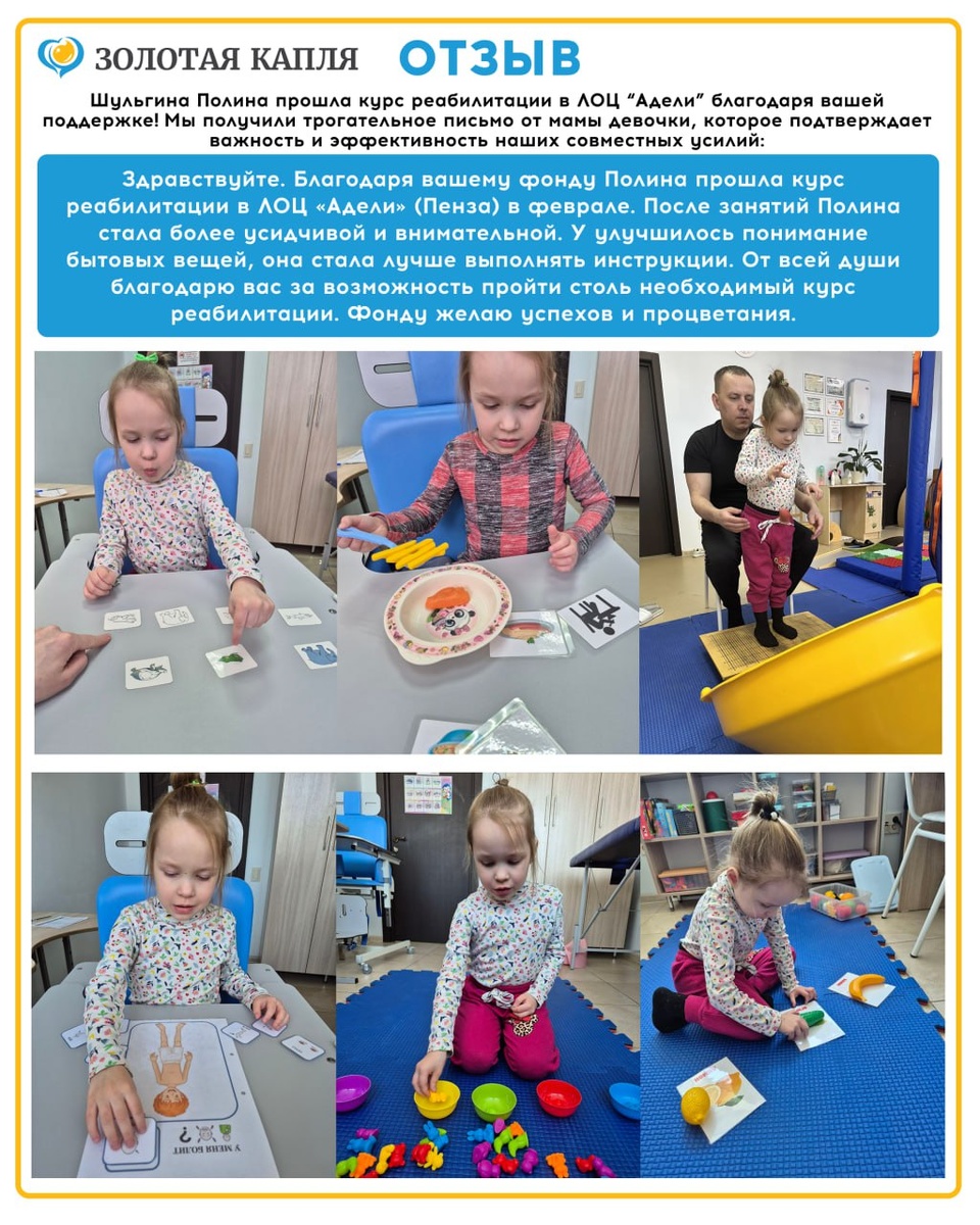 Полина Шульгина прошла курс реабилитации! Девочка стала сильнее, увереннее и счастливее - и всё это благодаря вашей поддержке