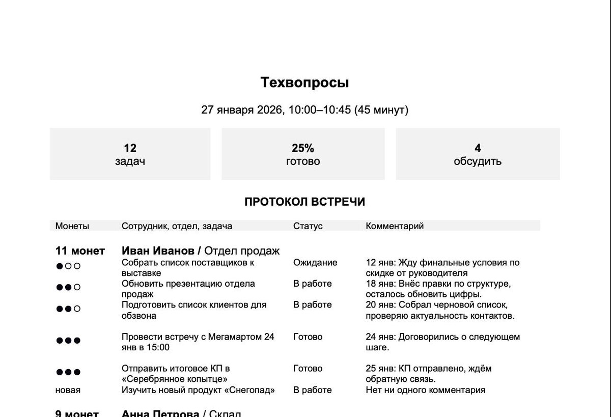 выглядит память между встречами. Не отчёт. Не план. Не контроль. Просто пространство, в котором задачи не исчезают. 🚀 если интересно что дальше... #Делов #Деломер #ВсеДела