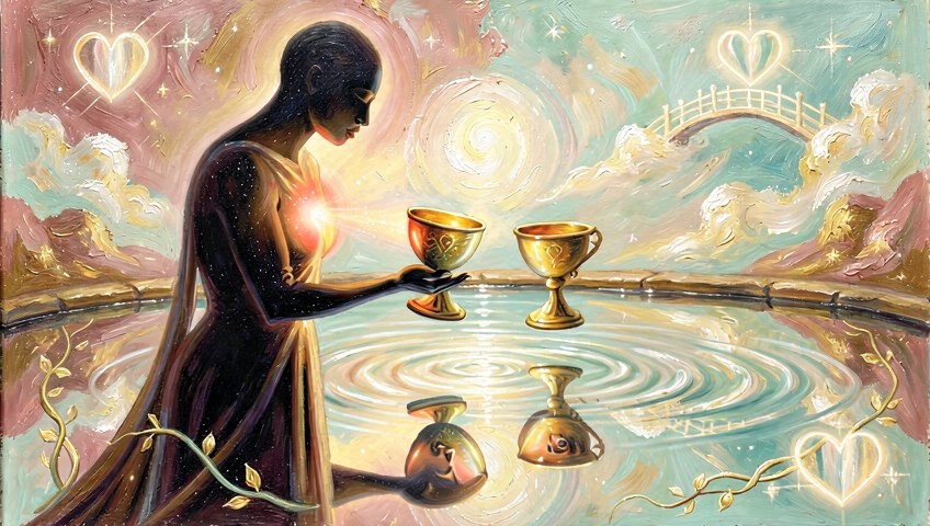 💞 Она говорит о встрече душ — не обязательно с другим человеком, но и с частью себя. Это энергия гармонии, взаимопонимания и глубокой симпатии. В любви и дружбе это знак искреннего обмена чувствами, где нет места манипуляциям. Сегодня будь открыт для диалога, слушай сердцем. Если ты одинок — эта карта напоминает: самые важные отношения начинаются с принятия и любви к себе. Обними свои чувства, позволь им течь. Ты достоин той нежности, которую готов дарить миру.