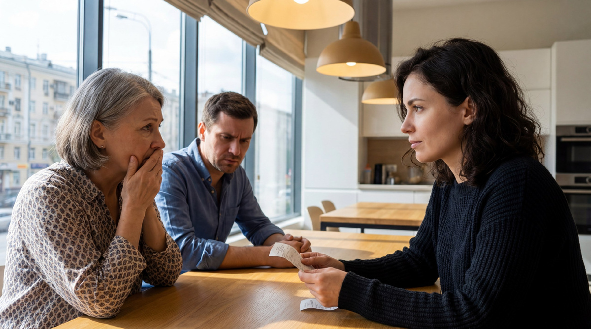 Надежда стояла посреди прихожей и смотрела на этот листок. В квартире было тихо — муж уехал к матери ещё с утра, сказал, что поможет с антресолями. Она медленно сложила чек пополам и опустила в карман халата. Внутри что-то сжалось. Не злость ещё — что-то хуже. Предчувствие.