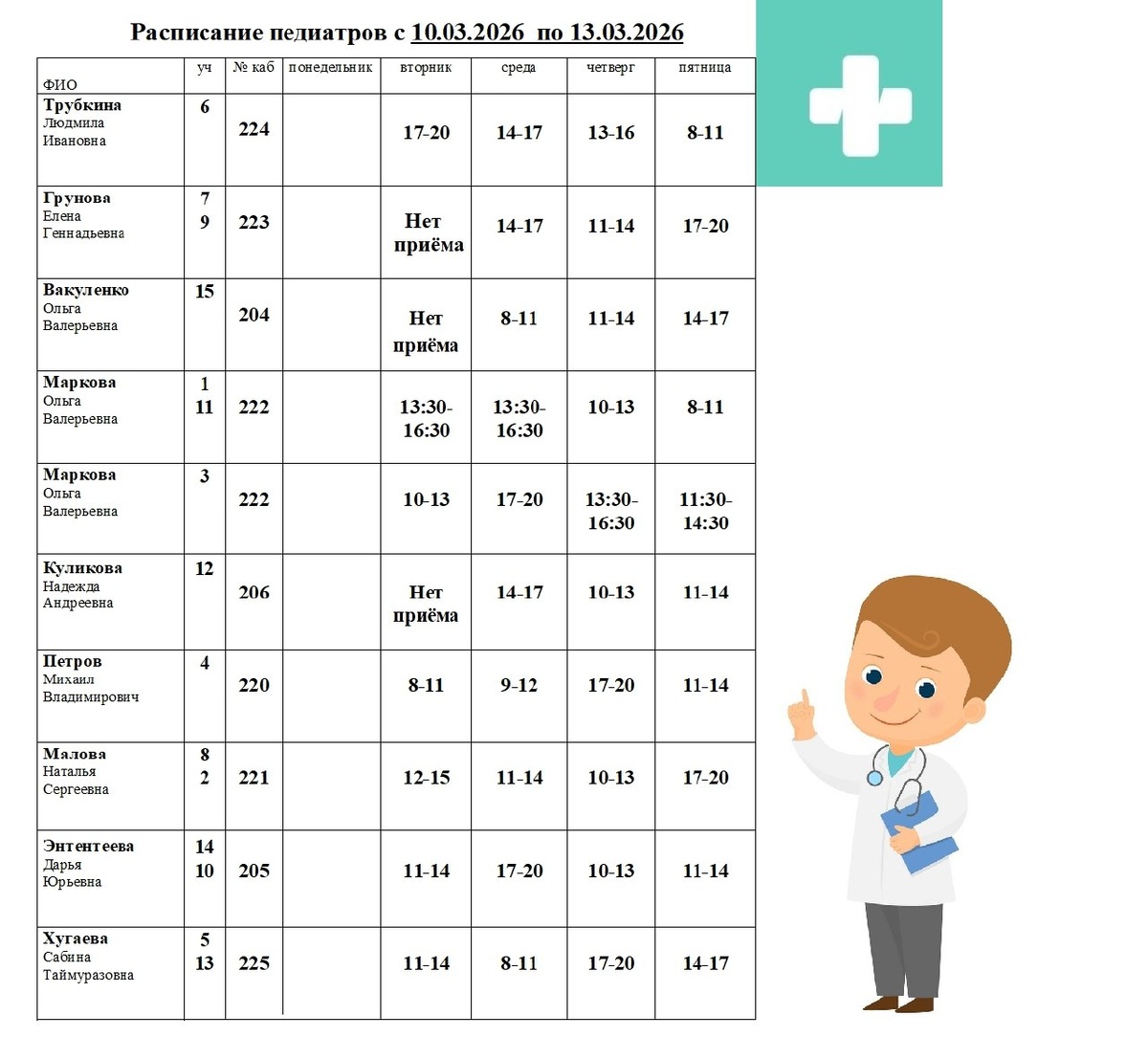 Информация из детской поликлиники №73.