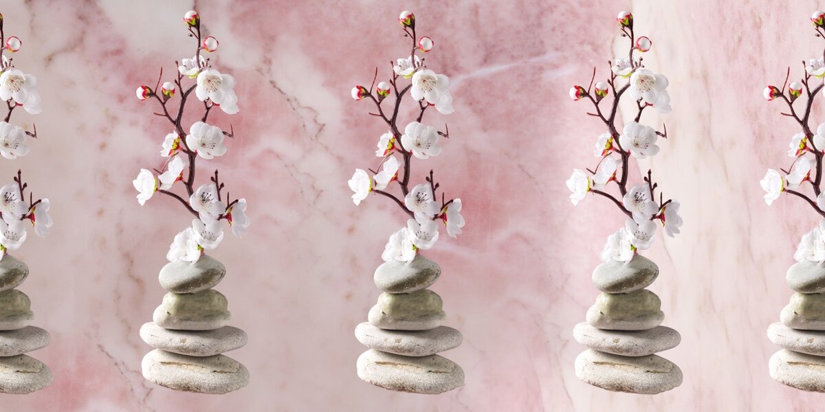 Выглядит десерт масштабно: ветка сакуры на пирамиде из камней. Но съедобный только один из них — тот, что сверху. Под шоколадом прячется кокосовое парфе с кусочками манго и лаймом.