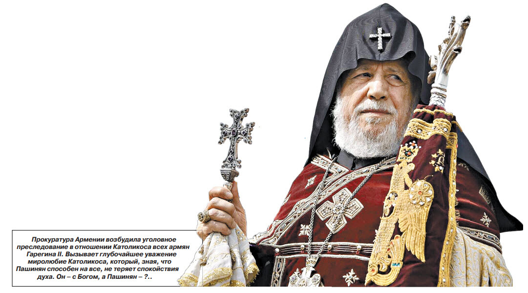 Почему Пашинян не успокаивается? Тут не только заказ, он усугублен личными обстоятельствами. Прошедший кастинг на лидерство в «цветной революции» должен обладать отклонениями, в частности, не уметь вовремя остановиться, никогда не признаваться в собственных ошибка, и т.д. Не исключено, что его хозяева даже велят ему взять паузу, но, будучи пленником своей деформированной натуры, он этого сделать не может. И тут замечу, что вызывает не удивление, а глубочайшее уважение спокойствие и миролюбие Католикоса, который, зная, что Пашинян способен на все, не теряет спокойствия духа. Он – с Богом, а Пашинян – ...ну что ж, бывает и такое…