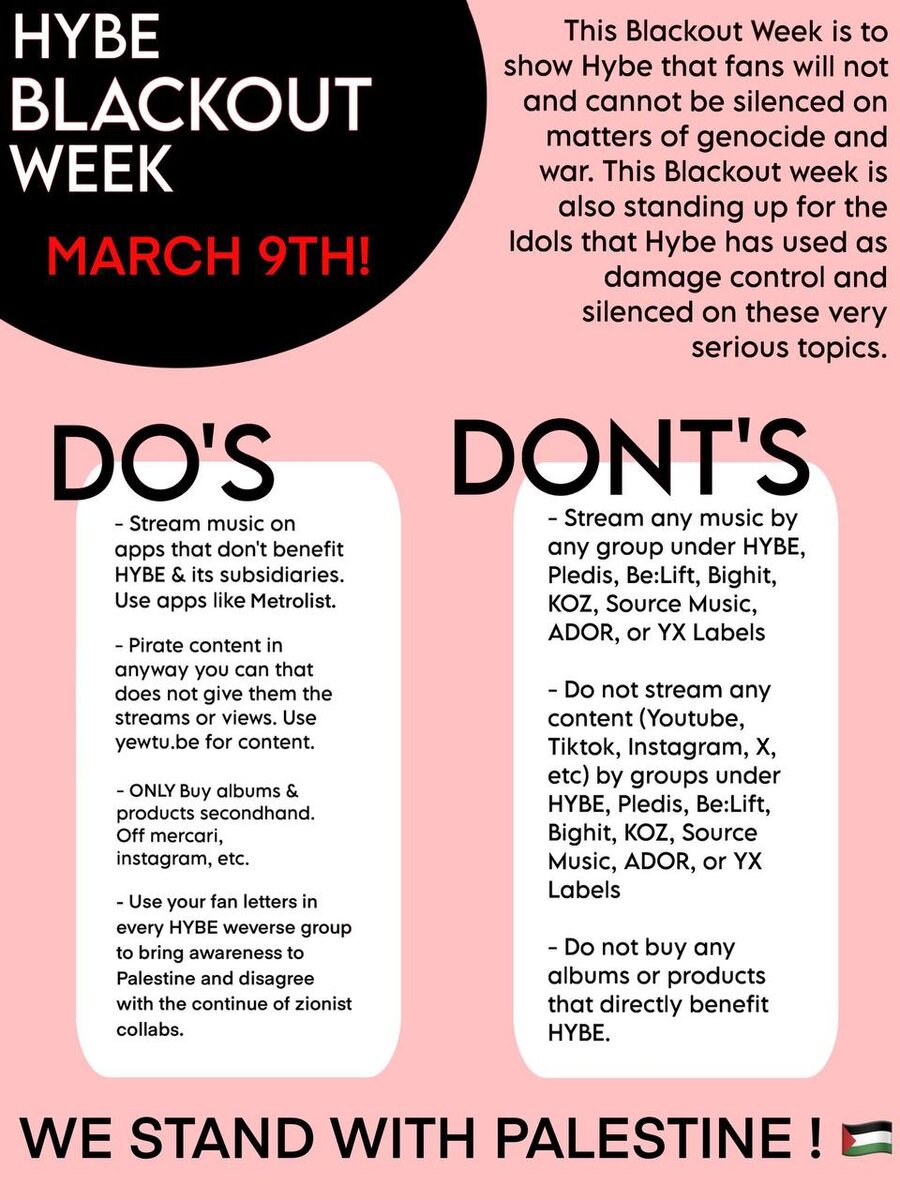 В сети призывают объявить полный бойкот компании Hybe в неделю с 9 марта