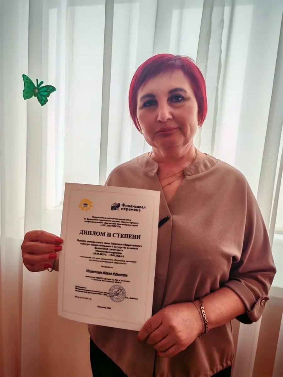 🕓 Подведены итоги Всероссийского конкурса профессионального мастерства педагогов финансовой грамотности «Финансовая перемена», который призван выявить лучшие педагогические практики в области повышения финансовой грамотности. Организатором конкурса выступил Федеральный методический центр по финансовой грамотности Высшей школы экономики. 🎊🎊Поздравляем воспитателя детского сада № 6 «Светлячок» И.Ф. Мельникову, которая достойно представила город Урюпинск и стала призером конкурса в номинации «Лучшее методическое обеспечение реализации программы по финансовой грамотности».🎉 #администрацияУрюпинска #финграмотность 📌🌐Подписывайтесь на наши сообщества в: ➡️ МАХ: https://max.ru/id3438001187_gos ➡️ ОК: https://clck.ru/dZDgE ➡️ ВК: https://vk.com/iurup ➡️ ТГ: https://dzen.ru/id/629613afbb57ab2e51d051c5