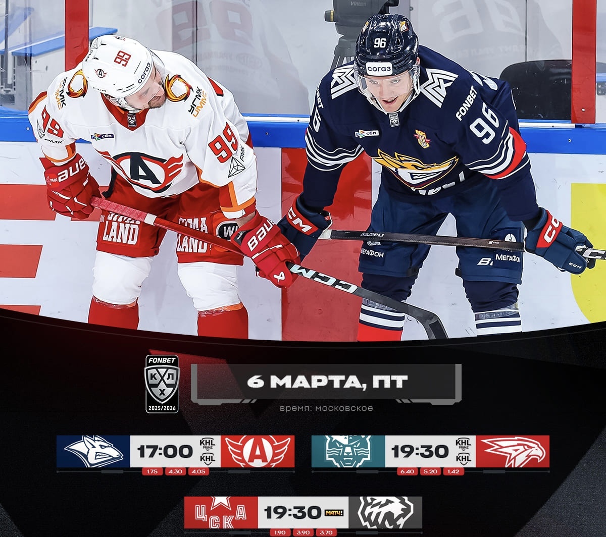- 19:30 МСК — ЦСКА vs Трактор: Армейцы в Москве против челябинского характера. Трактор умеет кусаться до последней секунды.