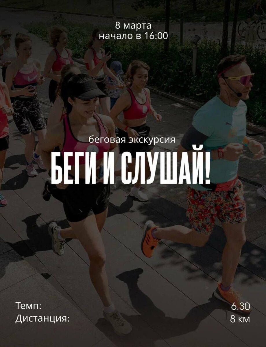В Международный женский день фонд «Больше чем можешь» проведет атмосферную благотворительную беговую экскурсию. Ее маршрут будет пролегать вокруг Кремля и набережным Москвы-реки. В классной компании единомышленников вы пробежите 8 км и узнаете много нового. Средний темп составит 6:30 мин/км, что подойдет для любого уровня подготовки. Новички, не бойтесь 💪🏻 Во время экскурсии гид расскажет участникам о роли великих женщин в истории и их достижениях, о силе женской энергии и о том, почему в итоге женщины спасут мир. А после пробежки участников будет ждать горячий кофе и праздничный розыгрыш призов. 🍂Регистрация 🗓️ 8 марта 16:00 📍 Look Up Cafe&Shop, Садоводческая 9А 💰 42,2 рубля @moscowplan «Москва как на ладони» в MAX