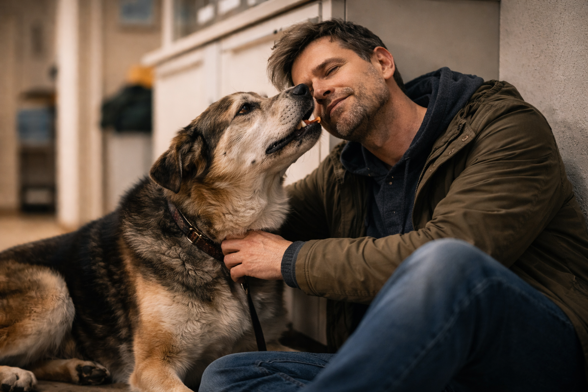 Пёс лизнул мужчину в лицо — и тот сел на пол и заплакал, как мальчик. Жизнь, а не кино.
