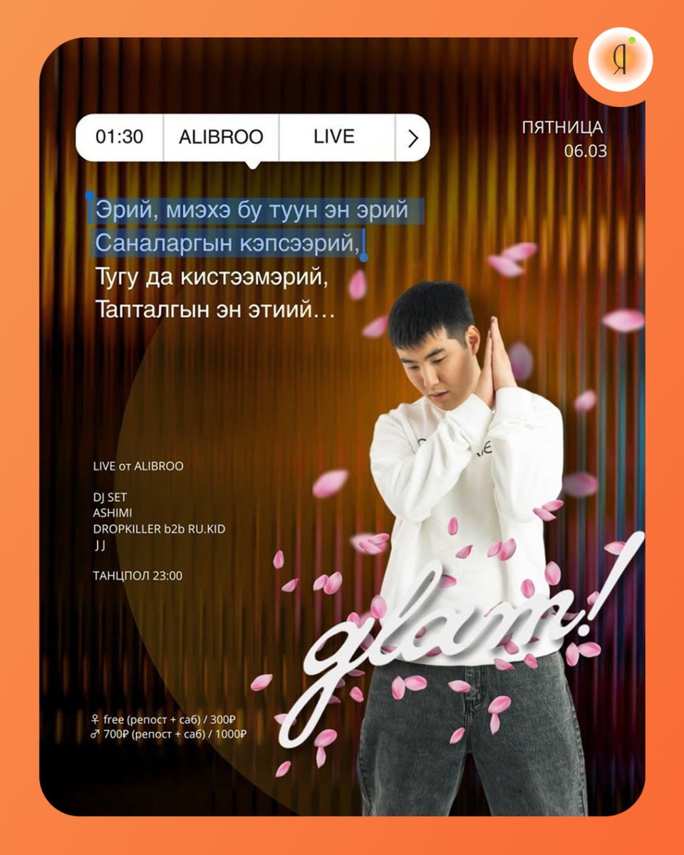 Танцпол для тех, кто любит музыку и движение. Здесь можно расслабиться, поймать ритм и просто наслаждаться ночью 🪩 DJ SET от ASHIMI | DROPKILLER b2b RU.KID | J J Танцпол: 23:00 | Выход артиста: 01:30 ❗️ Условия входа: Девушкам: репост + подписка БЕСПЛАТНО | Без — 300₽ Парням: 700₽ с репостом + подпиской | Без — 1 000₽ ул. на Аммосова 3 🥳 Режим работы с 15:00 до 06:00 🕕 Бронирование столов по номеру +79245697469 Online Якутия | Ждем вас в МАХ