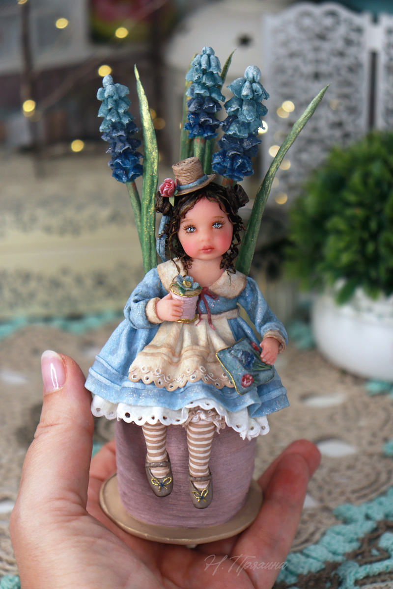 Всем привет. Ещё снег не растаял, а у нас уже весна. Недавно в моей мастерской появилась маленькая феечка, совсем небольшая, всего 12 см. Оказалось, что она обожает рукодельничать и поселилась на большой катушке с нитками. Так я её и назвала «Катушечкой» или сокращённо Кэти. Кэти обожает цветы и так ждёт весну, что синие мускари выросли прямо у неё из катушки. Кэти "Катушечка" обожает нарядные платьица, рюшнчки и бантики... А ещё она очень любит вдохновлять, приносить радость и хорошее настроение. Вот такая она озорница и рукодельница Кэти Может жить на рабочем столе на своей катушке, а может украсить новогоднюю ёлочку (среди стеблей цветов мускари спрятана петля для подвеса). Спасибо за просмотр, всех с наступающим весенним праздником! 🌷🌷🌷