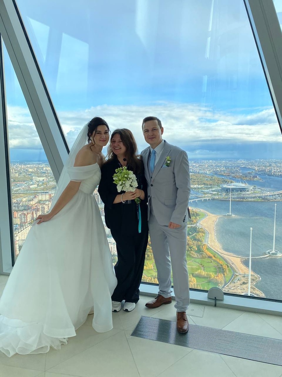 В феврале обзорной площадке Лахта Центра исполнился год. Наши гиды рассказывают истории, которые произошли на ней за это время и запомнились им больше всего. История от гида Татьяны Ивановской — об экскурсии, ставшей началом новой жизни. — Я работаю на высоте 365 метров уже год, с самого открытия обзорной площадки. Гости к нам приходят самые разные и очень интересные, но одна пара запомнилась особенно. 11 октября в моей группе оказались молодожены. Всё как полагается: белое платье, светлый костюм, букет. Они не стали искать романтический ракурс на Стрелке или Дворцовой площади — для свадебной фотосессии выбрали Лахта Центр. Предложения у нас здесь делают часто. Но это была уже не помолвка — это была настоящая свадьба. Первый день семейной жизни. И мы, экскурсоводы и экскурсанты, в тот момент стали гостями на этой свадьбе, а город — ее свидетелем. Рассказывая о Петербурге, я то и дело ловила себя на том, что просто смотрю на жениха и невесту: на их взгляды, нежность, спокойное счастье.